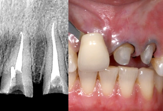 前歯にファイバーコアを入れ、オールセラミッククラウンを被せた症例